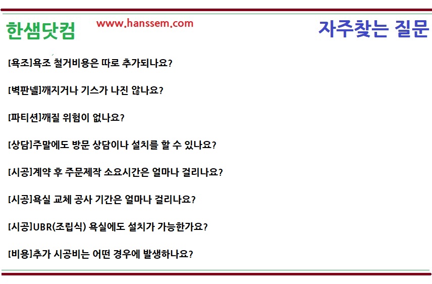 한샘닷컷 -자주찾는 질문 [욕조]욕조 철거비용은 따로 추가되는지 알아봅니다.