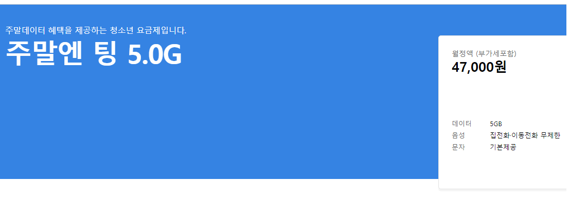 SKT 티월드 주말엔 팅 5.0G 요금제에 대하여 알아봅시다.