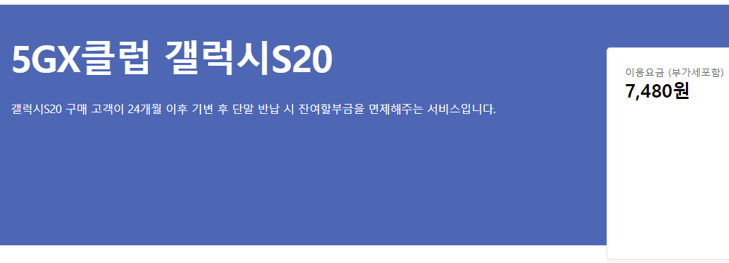 에스케이 T월드 5GX클럽 갤럭시S20 부가서비스는 갤럭시S20 구매 고객이 24개월 이후 기변 후 단말 반납 시 잔여할부금을 면제해주는 서비스입니다.