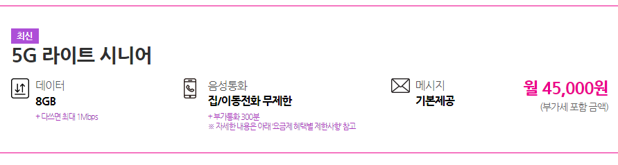 U플러스 5G 라이트 시니어 요금제 유의 사항 안내.