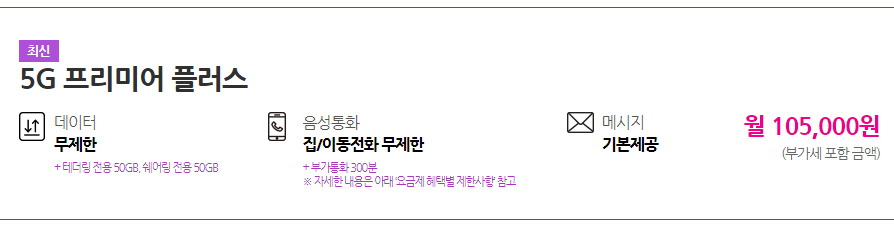 LG 유플러스 5G 프리미어 플러스 요금제 주요 혜택 안내.