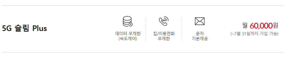 본 요금제는 2020년 7월 31일 까지 가입 가능합니다.