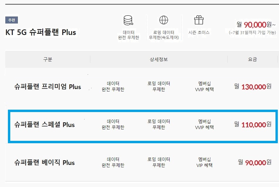 KT 5G 슈퍼플랜 스페셜 Plus 요금제 가입 및 유의사항.